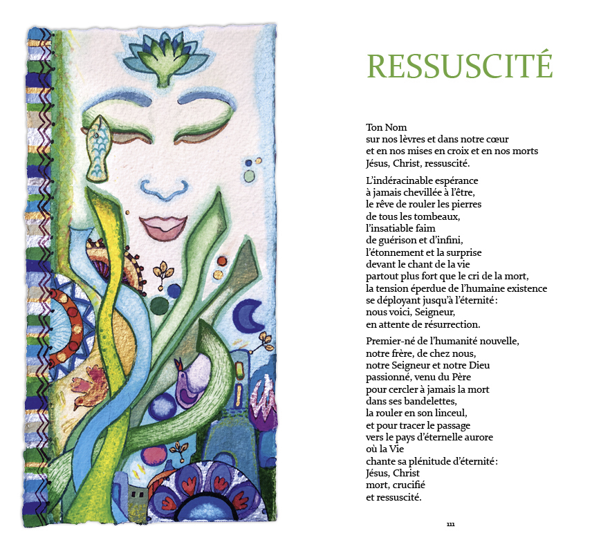 - Iza EMBERGER, artiste alsacienne de renom, a réalisé six peintures originales pour accompagner les textes et inviter à la contemplation.